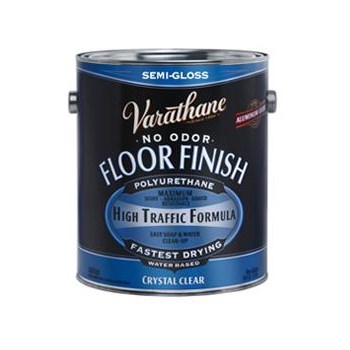 Varathane Crystal Clear Floor Finish is formulated with patented Aluminum Oxide Nano Technology to outperforms leading national brands with superior scuff and scratch resistance. It is ideal for all interior stained, bare, or painted projects such as furniture, doors, cabinets, and trim. It has better durability than traditional wood finishes, is fast dry, and is self leveling. Apply to wood floors for a non-yellowing, water-based finish. Cleans easily with soap and water.