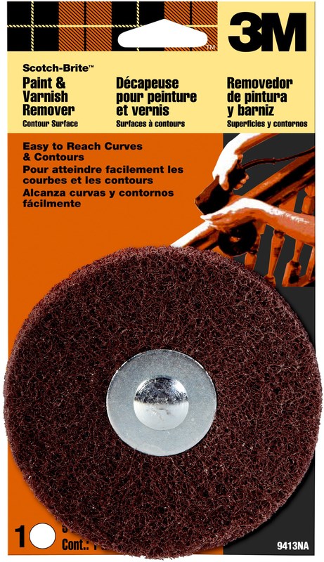 Scotch-Brite® paint & varnish remover mounts directly to power drills