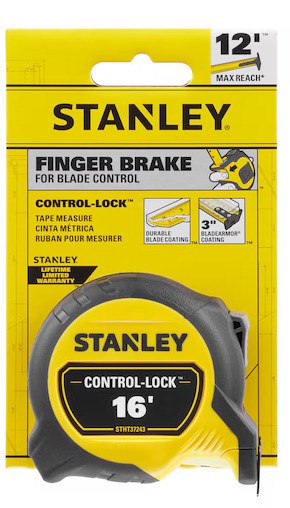STANLEY CONTROL-LOCK 16 FT TAPE MEASUREMeasure with precision using this compact tape measure from Stanley. Engineered for the perfect balance of size, performance, and comfort, the CONTROL-LOCK features a finger brake for controlled blade retraction and durable construction for job site use.