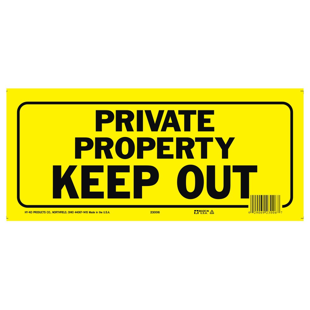 HY-KO PLASTIC WARNING SIGN - PRIVATE PROPERTY KEEP OUTHy-Ko durable plastic warning sign with bold, clearly printed "Private Property Keep Out" message. Designed for outdoor use with weather-resistant construction that withstands rain, sun, and extreme temperatures. Pre-punched mounting holes make installation quick and easy on fences, posts, gates, and walls.