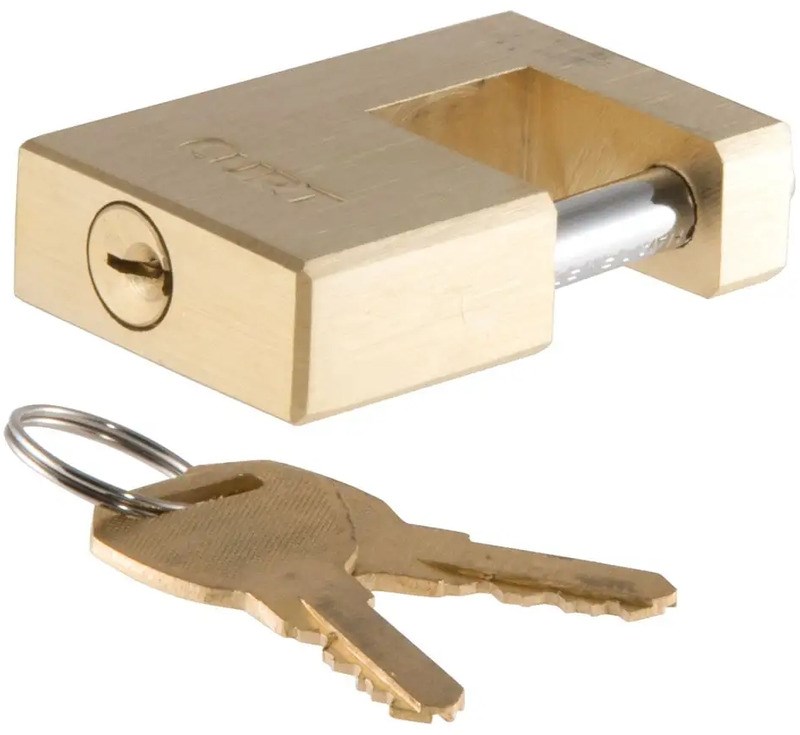 CURT COUPLER LOCK - SOLID BRASSKeep your trailer secure with this CURT coupler lock featuring a solid brass padlock design. The compact pin style fits through the latch mechanism of your trailer coupler, locking it securely in place to deter theft and tampering.