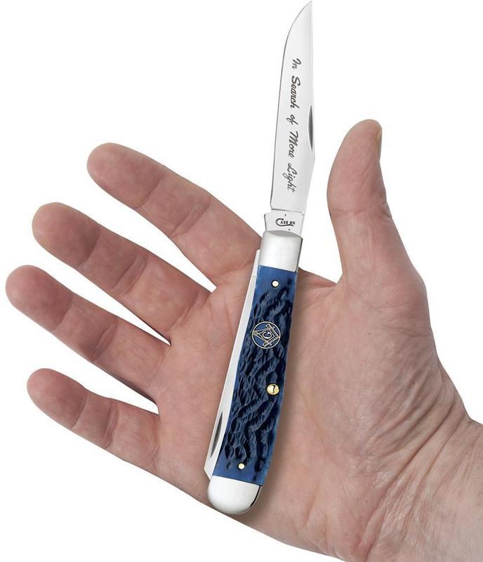 - Jigged blue bone handle