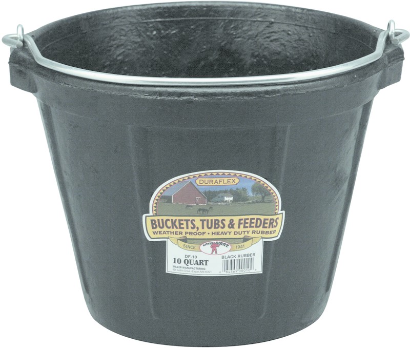 Little Giant flat-back buckets are a favorite on farms and ranches everywhere. The Flat-Back fits more compactly for hanging against a wall or fence, plus it makes hauling heavy loads a lot easier. The design features a wider opening, with convenient stacking ribs so the buckets are easier to pull apart when stacked, plus finger grips for easier pouring and graduation marks for measuring.