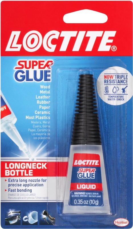 LOCTITE SUPER GLUE, LONGNECK BOTTLE - 10GLoctite Super Glue Longneck Bottle features a precision tip for controlled application without dripping. Easy-open cap with metal pin cleans and seals the nozzle for clog-free performance.