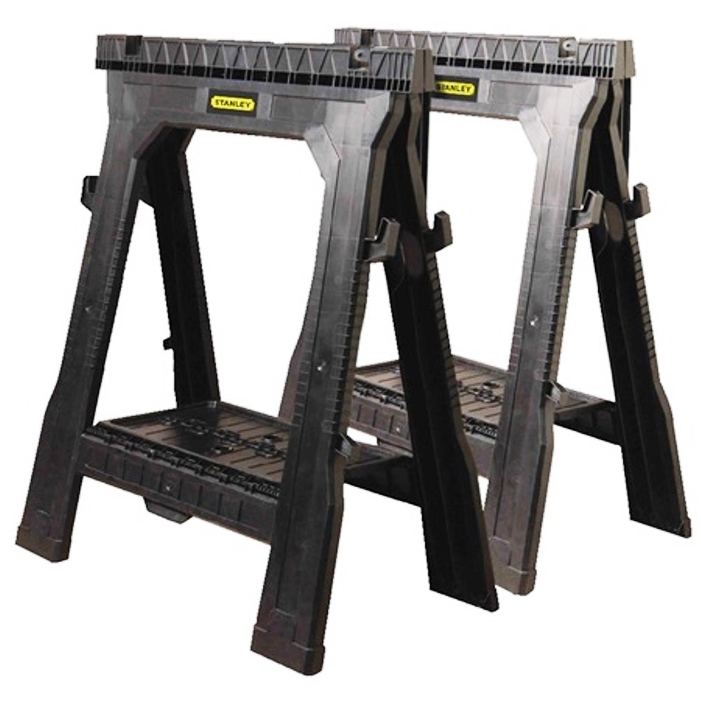 The STANLEY® Portable Folding Sawhorse secures your sawing surface and is collapsible for easy transporting and storage. When used as a pair, this lightweight and sturdy sawhorse twin pack can hold 1,000 lbs.