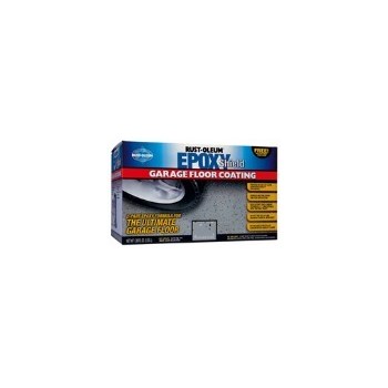 Rust-Oleum EPOXY SHIELD Garage Floor Coating creates showroom-quality surfaces. Protects against gasoline, antifreeze, motor oil, salt and hot tire pick-up. Kit includes 2-part water-based epoxy coating, concentrated cleaner, decorative chips, stir stick, detailed instructions and an instructional video.