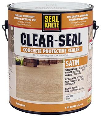 SEAL-KRETE® Clear-Seal Concrete Protective Sealer is a ready-to-use premium sealer that penetrates deeply to seal and protect painted, stained or bare concrete. It goes on milky white and dries to a clear finish, enhancing the natural character of your surface. Clear-Seal is a durable urethane-fortified acrylic sealer with low odor, and low VOCs, so it’s easy to work with and safe for the environment. It has excellent chemical resistance and repels stains, making it ideal for pool decks, patios, porches, driveways, garages or anywhere you want to protect and beautify painted, stained or bare concrete.