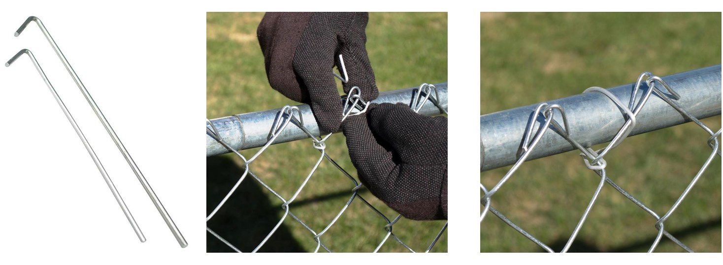 The YARDGARD 6-1/2 in. aluminum chain link ties (30-Pack) are galvanized pieces of bendable wire used to secure chain link fabric to a fence's framework. Each tie has a hooked end for easier installation and there are enough ties included to install 30 ft. of chain link fencing.