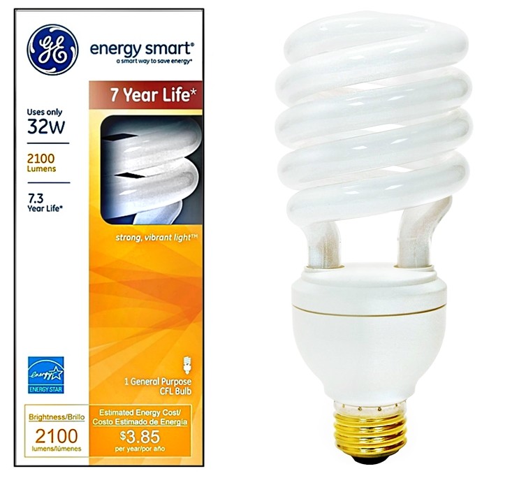 - 32 watt spiral compact fluorescent replaces a 150 watt incandescent bulb