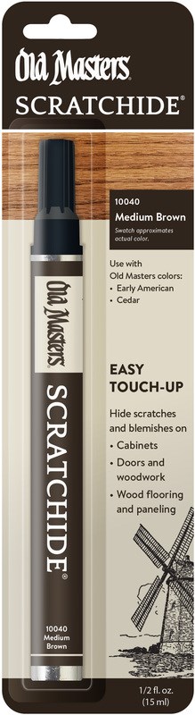 This pen will stain, seal and hide scratches easily on a variety of surfaces. This pen has a replaceable felt tip, patented valve feed system and guaranteed not to dry up.