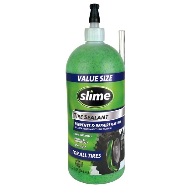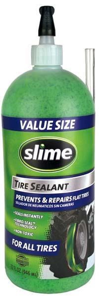 Slime Tire Sealant is formulated and tested for use in all pneumatic tires. Once installed, Slime remains liquid and will not harden or dry out. Slime is guaranteed for 2 years.
