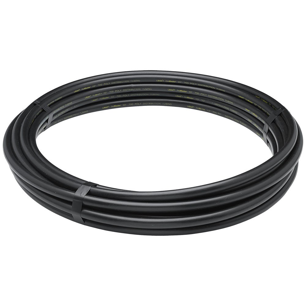 ORBIT 1/2" POLY DISTRIBUTION TUBING - 50 FTDistribute water efficiently in your drip irrigation system with this Orbit 1/2" polyethylene distribution tubing. This flexible, UV-resistant black tubing carries water from a drip valve or hose faucet to plant zones, working with most new or existing drip systems. Rated for 0-80 PSI and suitable for above or below ground installation.