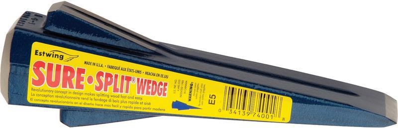 This unique wedge has a revolutionary concept in design which makes splitting wood fast and easy. This wedge has a fast taper head for easy starting. The Sure SplitĀ® fins permit extra wedge action and the sledge will continue through out below the wood line for sure splitting.