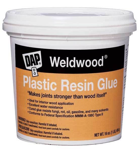 WELDWOOD® Plastic Resin Glue  is a powdered, pre-catalyzed water-activated glue designed to provide strong, durable bonds for wood.