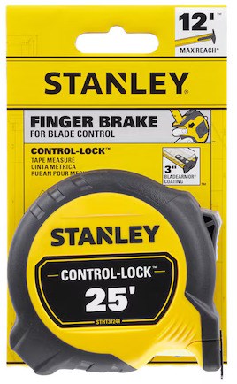 STANLEY CONTROL-LOCK 25 FT TAPE MEASUREMeasure with precision using this professional tape measure from Stanley. Engineered for the perfect balance of size, performance, and comfort, the CONTROL-LOCK features a finger brake for controlled blade retraction and durable construction for demanding job site use.