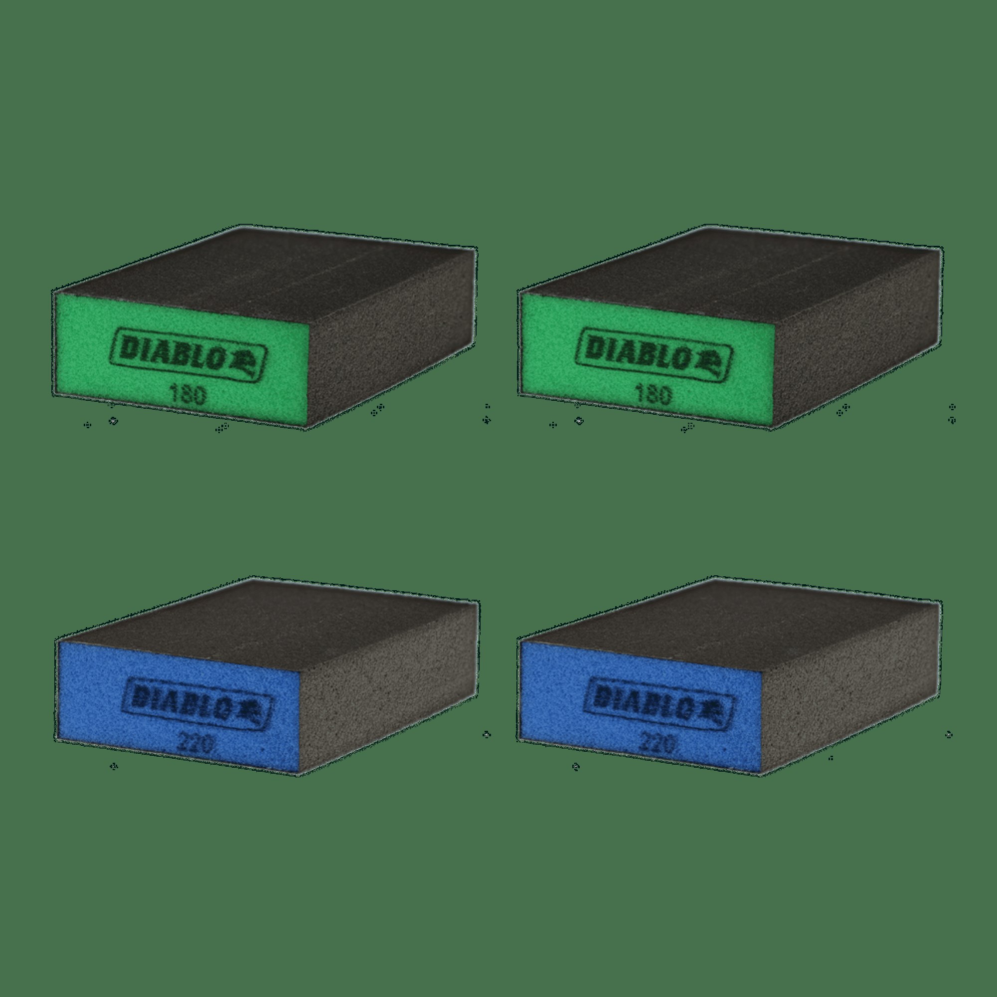 DIABLO ASSORTED LARGE FLAT EDGE SANDING SPONGES - 4 PACKGet up to 3x longer sanding life compared to standard sheets with these Diablo flat edge sanding sponges. The flat edge design allows precise sanding in inside corners and tight areas, while the full contact surface conforms to contours for smooth, even results.
