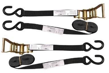 ERICKSON 1" x 10' RATCHET STRAPS WITH S-HOOKS - 2 PACKLight-duty ratchet tie-down straps ideal for securing smaller items on trucks, trailers, and utility vehicles. Each strap features vinyl-coated S-hooks that connect easily to anchor points without scratching surfaces.