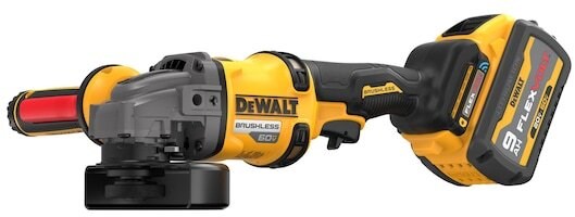 DEWALT FLEXVOLT 60V MAX BRUSHLESS 4-1/2" TO 6" GRINDER KITThe DeWalt DCG418X2 FLEXVOLT 60V MAX Brushless Grinder Kit delivers corded-level power without the cord. The high-efficiency brushless motor produces 13-amp equivalent power at 9,000 RPM, powering through metal cutting, concrete grinding, and surface prep. The electronic Kickback Brake detects bind-up and shuts down the motor in milliseconds for added safety.