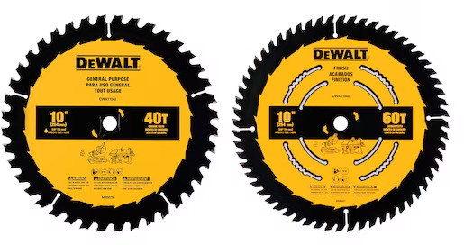 DEWALT 10" GENERAL PURPOSE CIRCULAR SAW BLADE COMBO PACKGet versatile cutting performance with this DeWalt 2-pack of 10" circular saw blades. The combo includes a general purpose blade for ripping and a fine-tooth blade for crosscutting, covering a wide range of cutting tasks in one convenient package. Carbide-tipped teeth and optimized tooth geometry deliver clean, accurate cuts through softwood, hardwood, plywood, and OSB.