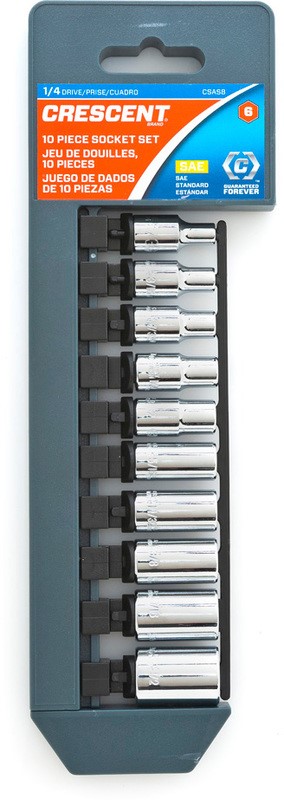 10 PIECE 1/4" DRIVE 6 POINT SAE SOCKET SET