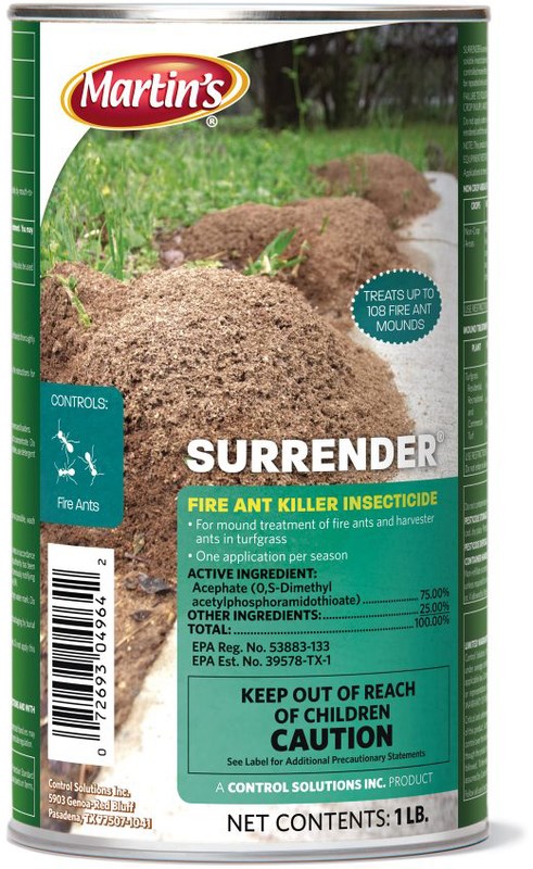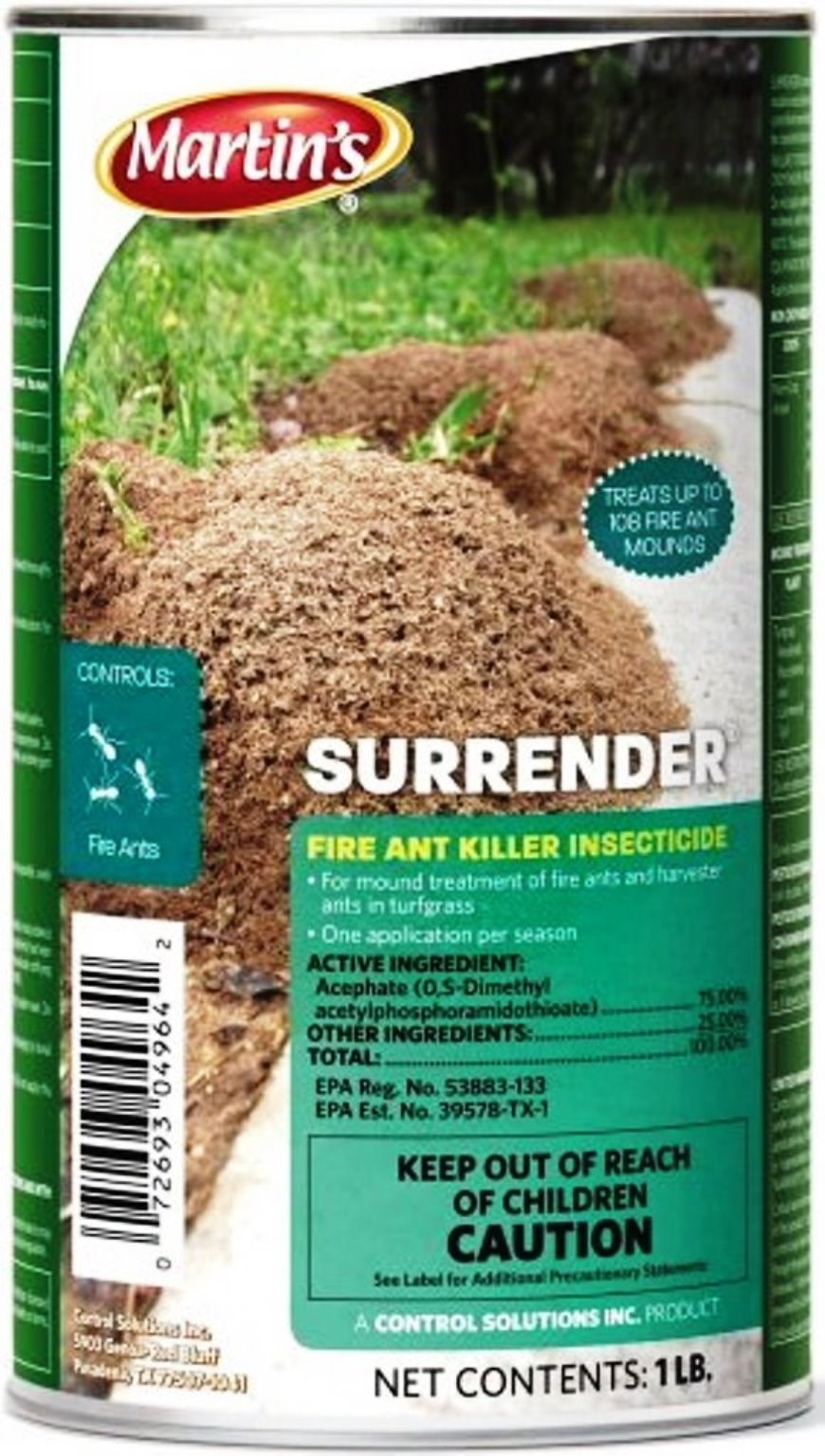 - Surrender Fire Ant killer contains 75% Acephate