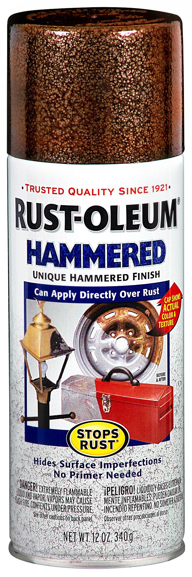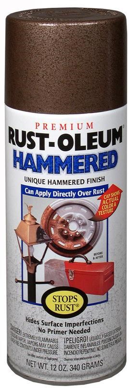 Rust-Oleum Hammered is a distinctive hammered look that hides flaws and imperfections found in scratched, rusted or pitted metals. Apply directly over rust. Works on wheelbarrows, lighting fixtures, wheel rims and other metals as well as wood, concrete and masonry. It features a comfort tip with a wider finger pad to reduce fatigue caused by continuous spraying.