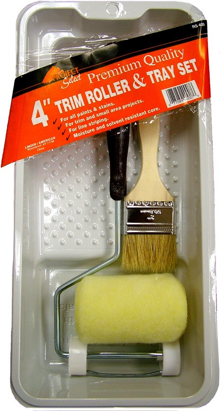 Includes 4" tray, roller frame and cover plus 2" paint brush