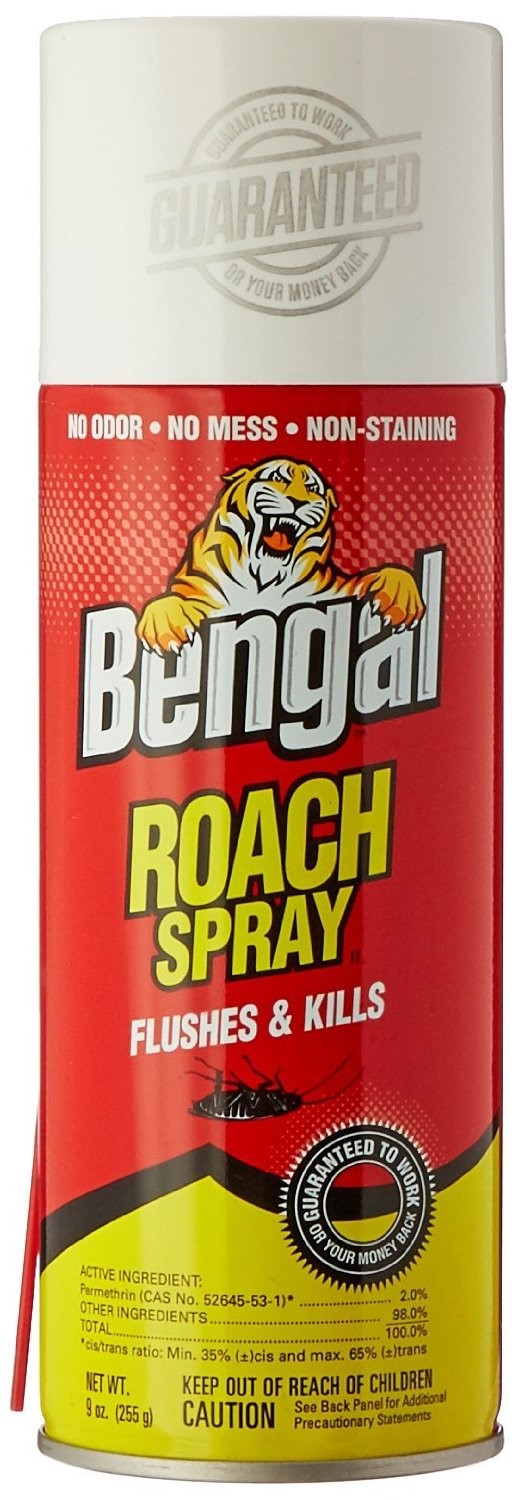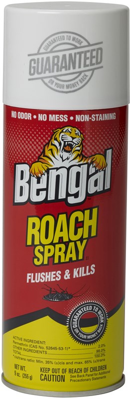 Bengal Roach Spray is formulated with no CFCS and provides optimal protection against a variety of pesky insects. The oil-free killer offers approximately a 4 month residual and a quick knockdown time with guaranteed extermination. Specially designed to kill roaches, crickets, spiders, silverfish and mosquitoes.
