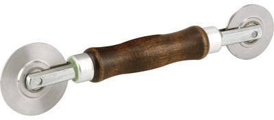 Rolling Tool; combination tool with wood handle and steel ball bearing rollers;convex wheel: 2-1/2" x 1/16"; concave wheel: 2" x 1/8"; used to install most screening materials and vinyl spline into window screen frame.