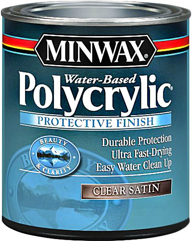 Minwax® Polycrylic® Protective Finish is a crystal clear, ultra fast-drying protective topcoat for use on interior wood surfaces including furniture, trim, doors, cabinets and paneling. It can be used over bare wood and both oil-based and water-based stains. Polycrylic® has little odor, cleans up easily with soap and water and can be recoated in only 2 hours. Minwax® Polycrylic® resists damage from abrasion, scuffing, chipping, water, alcohol and other common household chemicals.
