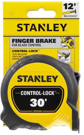 STANLEY CONTROL-LOCK 30 FT TAPE MEASUREMeasure with precision using this professional tape measure from Stanley. Engineered for the perfect balance of size, performance, and comfort, the CONTROL-LOCK features a finger brake for controlled blade retraction and durable construction for demanding job site use.