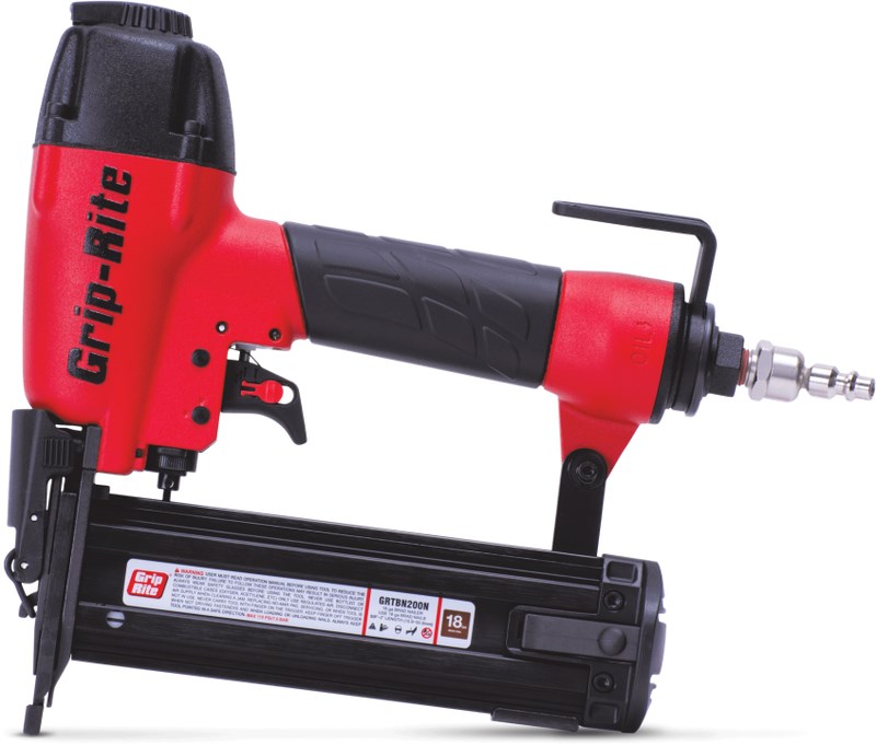 GRIP-RITE 18-GAUGE 2" BRAD NAILERThe Grip-Rite GRTBN200N is a pneumatic 18-gauge brad nailer that drives brad nails from 5/8" to 2" in length. Its narrow nose design provides excellent visibility and precise nail placement in tight corners and detailed trim work. Lightweight at just 2.9 lbs, this nailer reduces fatigue during extended use.