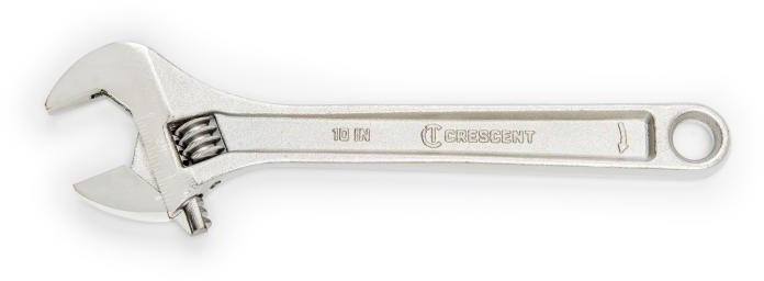 CRESCENT CHROME ADJUSTABLE WRENCH SET - 3 PIECEThis Crescent 3-piece adjustable wrench set includes 6", 8", and 10" wrenches made from heat treated forged alloy steel. Each wrench features a laser-etched scale for easy size identification and a hex jaw design that reduces slippage on fasteners. The wider handles improve comfort and reduce fatigue during extended use.