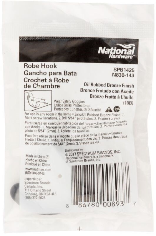Single Prong Robe Hook ~ Oil rub'd Bronze