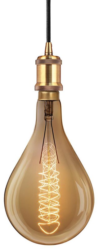 Add a vintage touch to your home or business with the 1-Light Brass Finish Pendant Fixture with a PS52 Incandescent Vintage Style Large Light Bulb from Feit Electric.