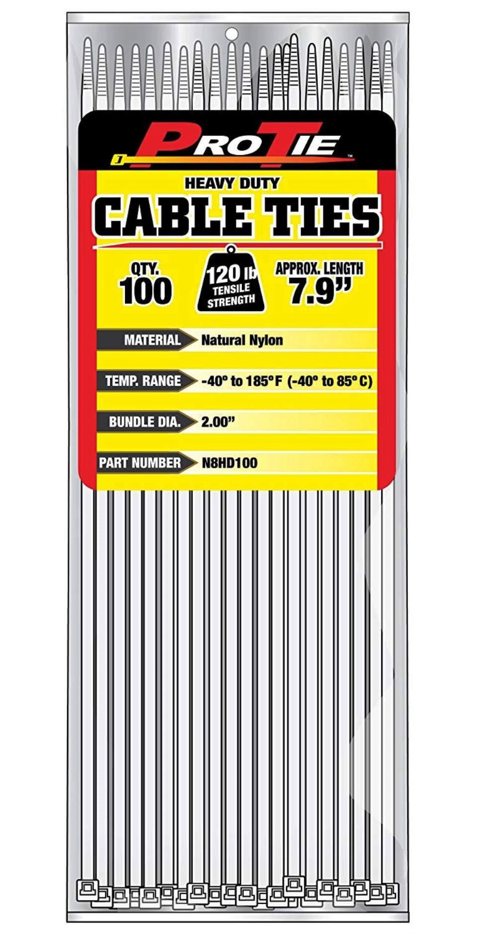 Heavy Duty Standard 100 Pack Cable Ties ~ 7.9"