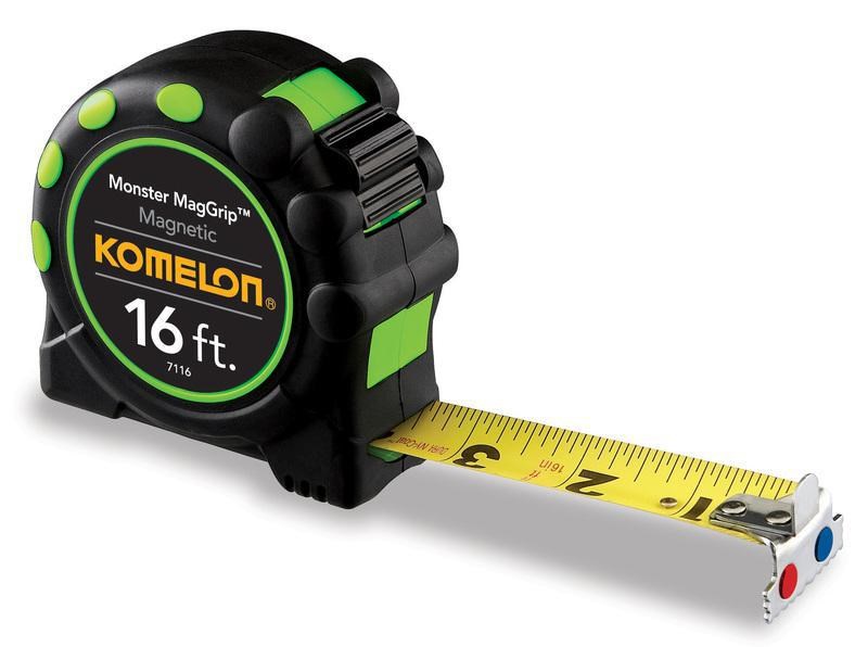 Komelon's 16' Monster MagGrip may not be daunting in size but the number of features is extraordinary. This is the ideal measuring tool for Electricians, Plumbers, Drywallers, Framers, Welders, HVAC (heating, ventilation, and air conditioning) installers, Steamfitters, and anyone working with ferrous metals. This tape is a must have for anyone working with or around metal because it makes the job easier.