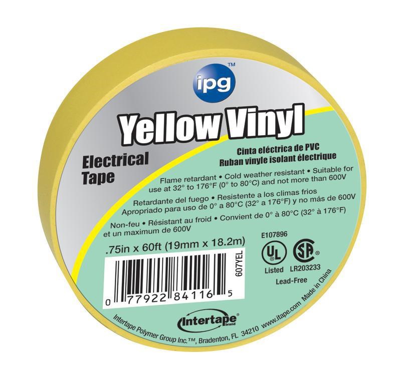 Electrical Tape, Vinyl ~ 3/4" x 60 ft,Yellow