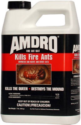 AMDRO Fire Ant Bait is the most effective way to control fire ants because it is a bait that kills the queen and destroys both visible and hidden mounds. Unlike other insecticides that have only enough power to kill a few ants on contact, AMDRO Fire Ant Bait kills steadily and surely until the entire fire ant mound is destroyed. No mixing, mess or smell. You don't even have to water it in. Just apply it and forget it.