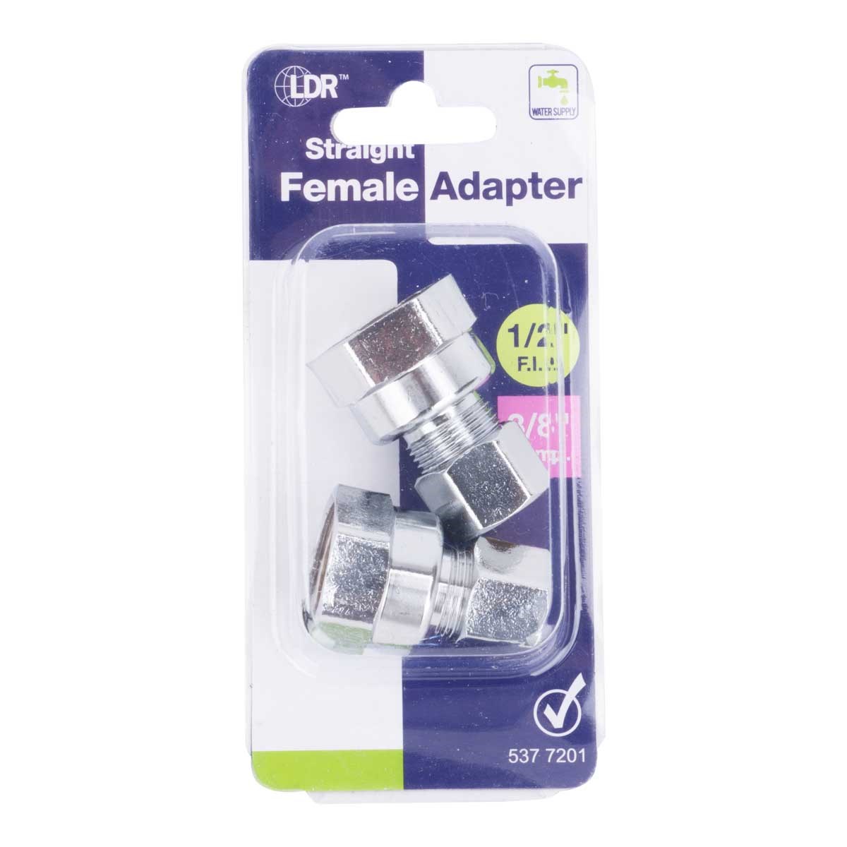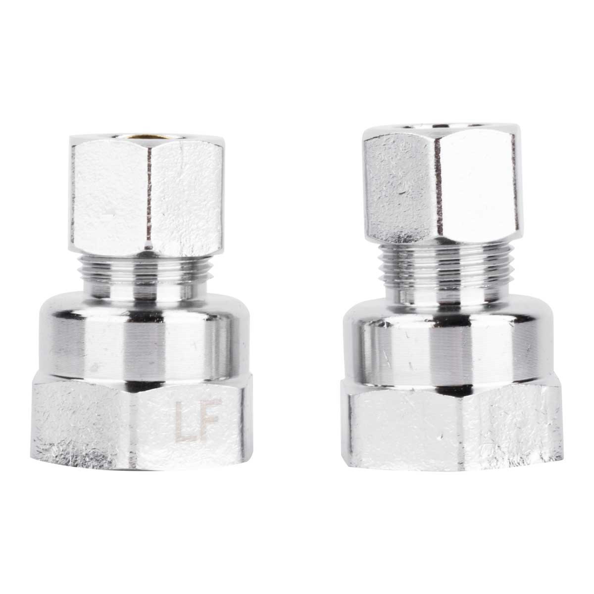 LDR LEAD FREE FEMALE COMPRESSION ADAPTER - 3/8" x 1/2" FIPThis lead-free brass adapter creates a secure transition between 3/8" compression tubing and 1/2" female iron pipe threads. Chrome plated for a clean appearance under sinks and behind fixtures. Sold as a 2-pack.
