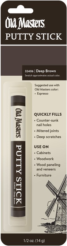 OLD MASTERS PERFECT MATCH PUTTY STICK - DEEP BROWNOld Masters Perfect Match is a wax-based putty stick designed to fill nail holes, scratches, and mitered joints on finished wood surfaces. Apply after the final finish coat has hardened for a seamless touch-up that blends with the surrounding wood. Colors can be blended together to achieve a custom match.