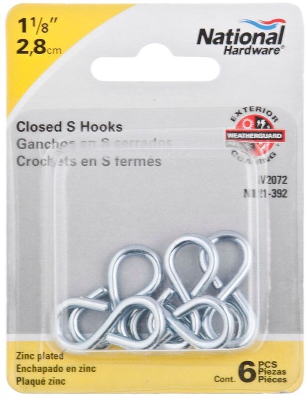 Zinc Closed S Hooks, Visual Pack 2072 #812