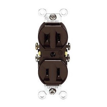 Experience the reliability of Leviton's 223 Duplex Non-Grounding Straight Blade Receptacle, designed for residential use with 2-prong plugs and parallel slotted outlets, featuring a robust 125 VAC, 15 A, 2 Poles, and 2 Wires, in a sleek brown finish.