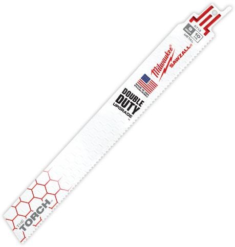 MILWAUKEE TORCH WITH CARBIDE SAWZALL BLADE 5-PACK - 9", 10 TPICut through thick metal faster and longer with Milwaukee Torch with Carbide Sawzall blades. Nitrus Carbide teeth deliver up to 50x longer life than standard bi-metal blades in thick metal applications like stainless steel, cast iron, and angle iron. The 9" blade length provides extra reach for cutting through walls and thick structural members, with 25% more carbide per tooth than competing blades.