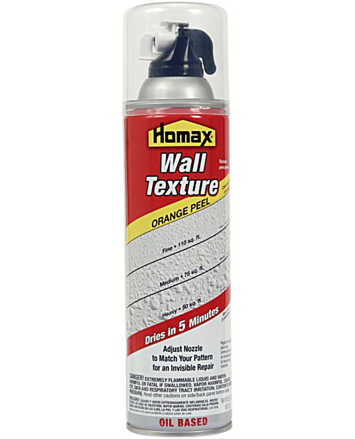 The original oil-based spray texture is the fastest way to patch “orange peel” and splatter drywall textures. The ultra-fast drying texture excels at replicating superfine orange peel finishes and is preferred by both contractors and DIYers who seek fast job completion. Dries in 5-30 minutes so you can repair and paint over to complete your project within an hour.