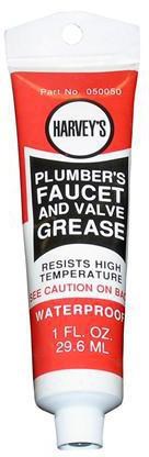 HARVEY'S FAUCET AND VALVE PLUMBER'S GREASEHarvey's heat-proof plumber's grease lubricates metal parts in faucets and valves to restore smooth operation. The waterproof formula prevents rust and resists temperatures up to 350 deg F.
