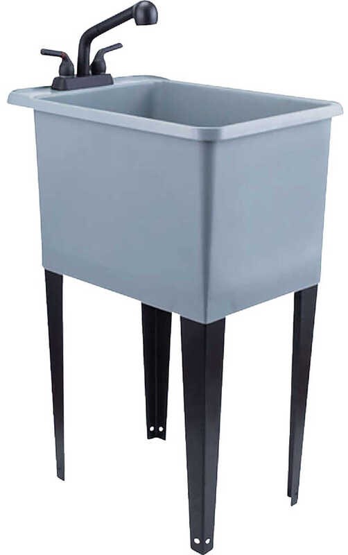 STZ INDUSTRIES GALVANIZED UTILITY TUB WITH FAUCETThis heavy-duty 16-gauge galvanized steel utility tub comes complete with a pull-out faucet for convenient washing and cleaning. The extra-deep basin accommodates buckets, mops, and other large cleaning tools, making it ideal for laundry rooms, garages, and workshops.