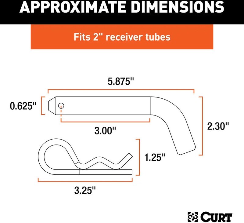 CURT 5/8" HITCH PIN & CLIPThe Curt 21501 Hitch Pin and Clip provides reliable security for ball mounts and accessories in 2" receiver tubes. Made from solid steel with a zinc finish for long-lasting corrosion resistance.