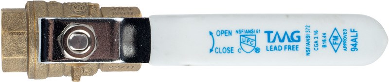 The Apollo 94ALF series ball valve features a lead-free forged brass body with a 316 stainless steel ball and stem for reliable shutoff in potable water systems. The full-port, quarter-turn design provides unrestricted flow and easy operation.