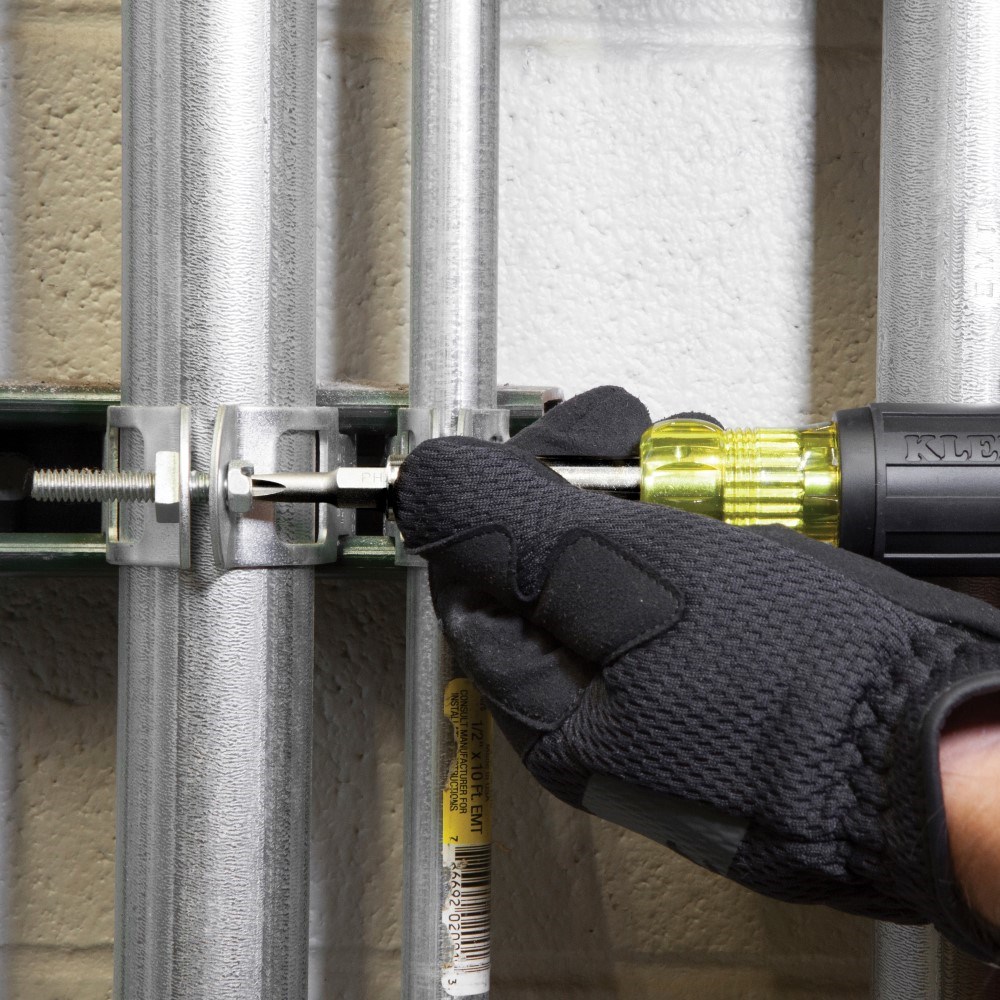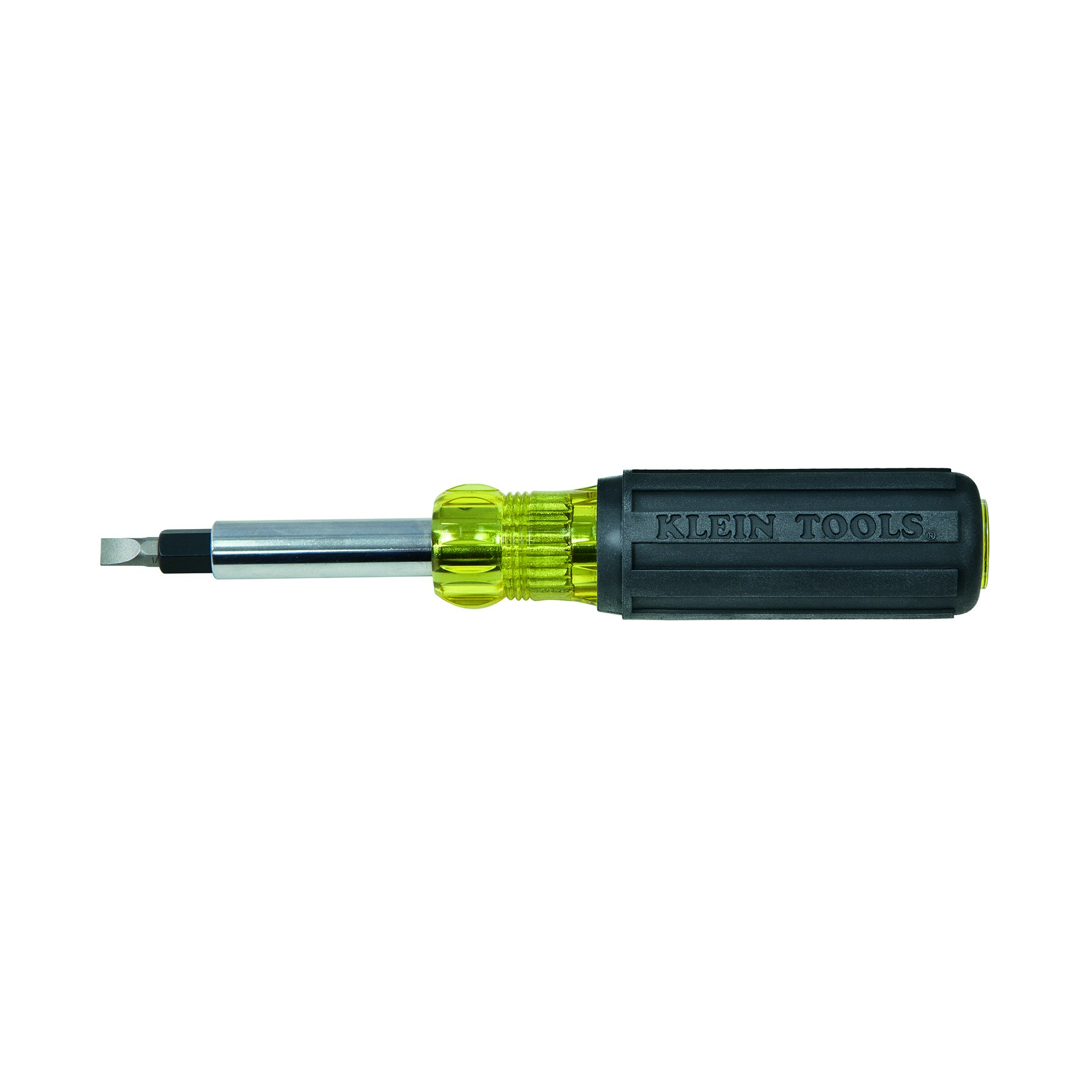 KLEIN TOOLS HEAVY DUTY 10-IN-1 MULTI-BIT SCREWDRIVER/NUT DRIVERThe Klein 32557 is a heavy-duty 10-in-1 screwdriver and nut driver designed for professionals. Strong, durable tips with square edges fit screw openings securely and reduce slippage. The interchangeable shaft stores all bits inside the Cushion-Grip handle for convenient access on the job.